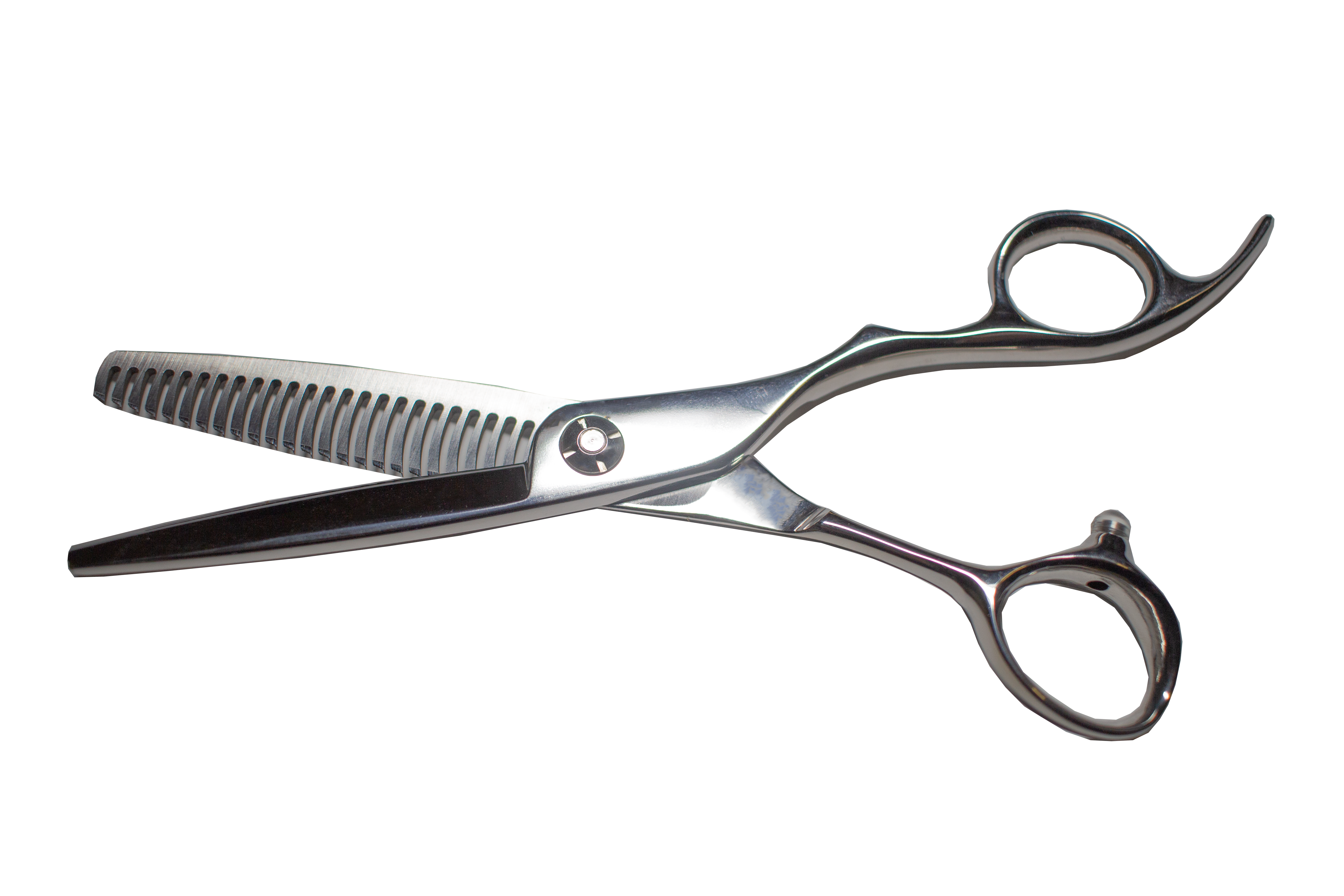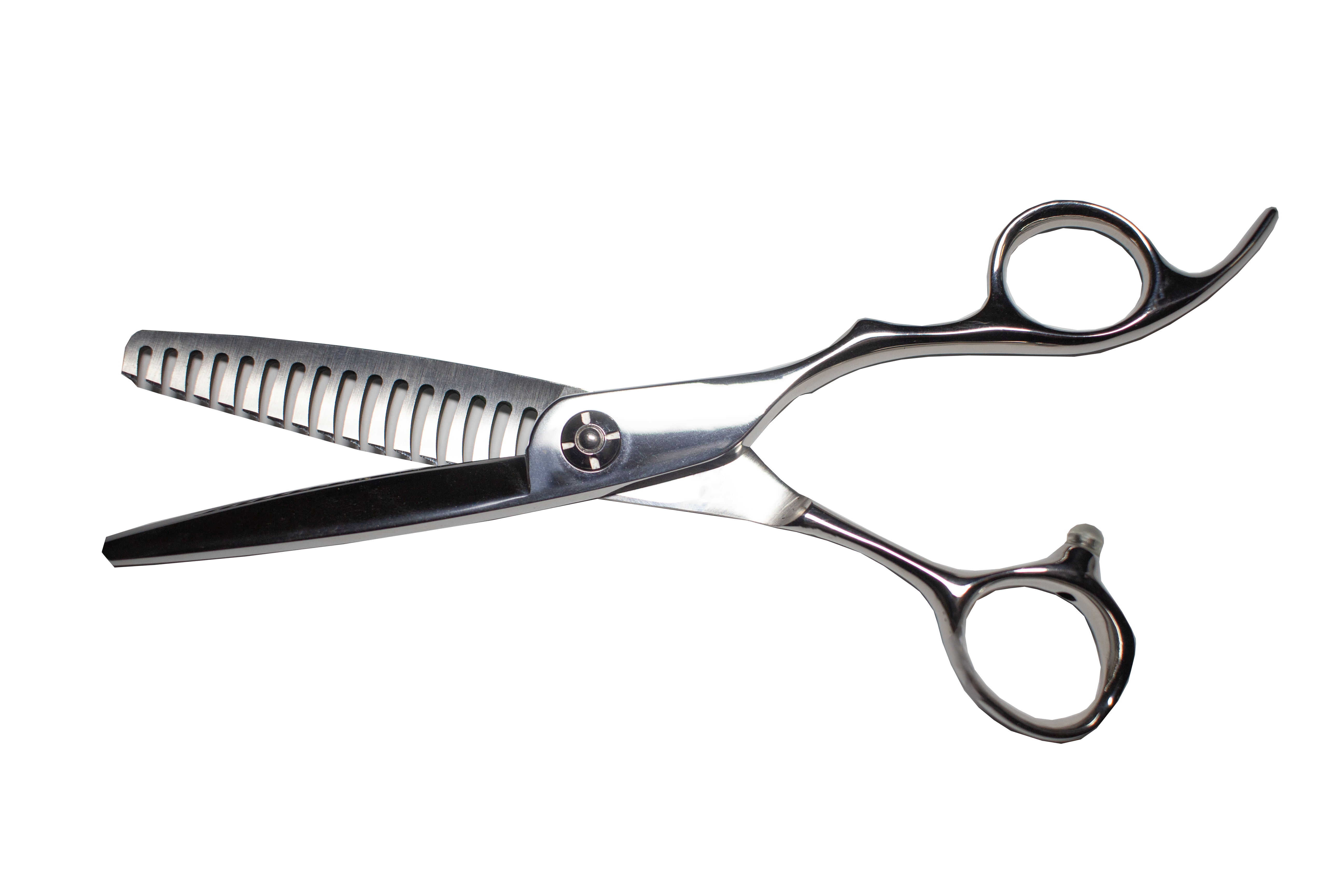 表面が多く切れ、動きのある仕上がりになります。 普段のセニングカット、毛量調節で使われ事が多いです。