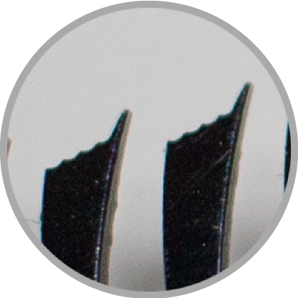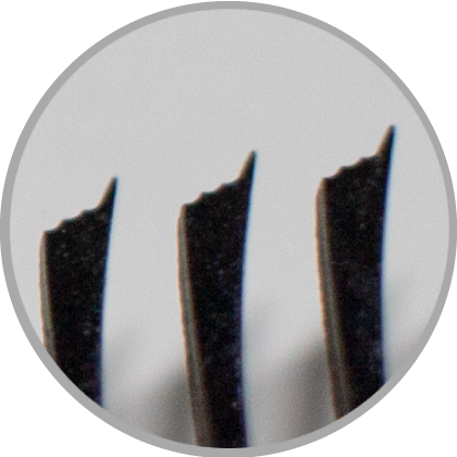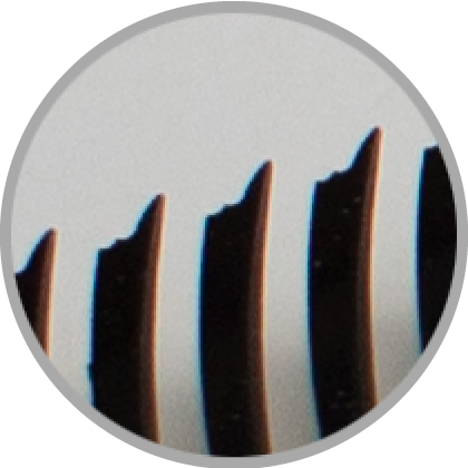 内側が多めに切れ、内巻きのふわっとした仕上がりが出せます。また、刈り上げのぼかしなどに適しています。